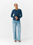 Ladies knitted pullover - long sleeve - o-neck in rib detail - normal fit - soft handfell